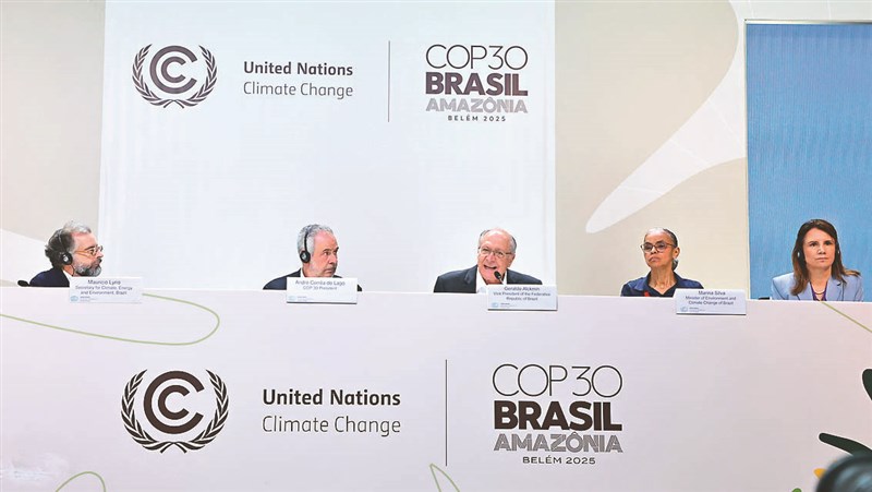 COP30本周進入關鍵政治談判,大會主席團於巴西時間18日發布可能會成為最終協定的草案,其中提到敏感的「化石燃料」議題。圖/潘俊宏