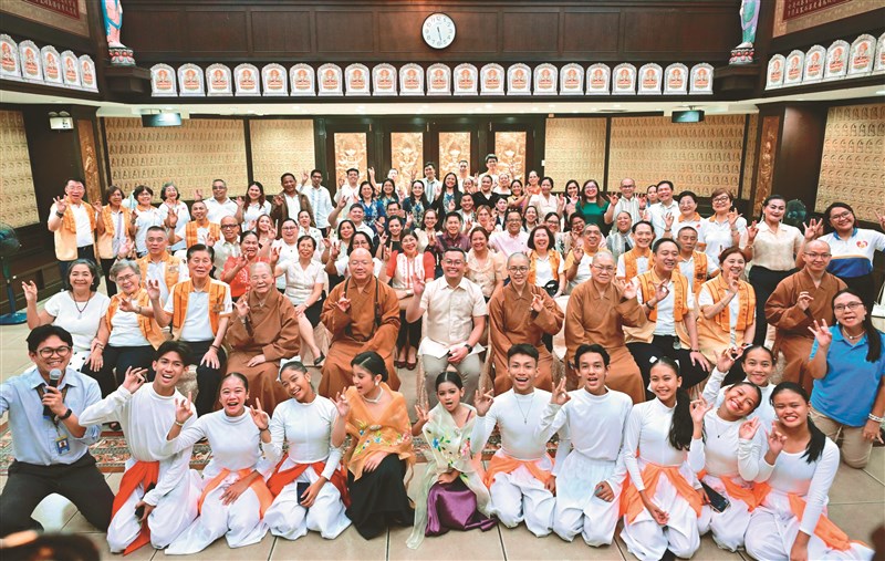菲律賓第10屆三好校園頒獎典禮,17日在菲律賓佛光山圓通寺舉辦,心保和尚(第2排左5)頒獎表揚三好校園,並偕同永光法師(第2排左4)、妙淨法師(第2排左7)、覺林法師(第2排左8),與菲律賓Negros Occidental省的11座城市共199所學校代表合照。圖/人間社記者何曰昌