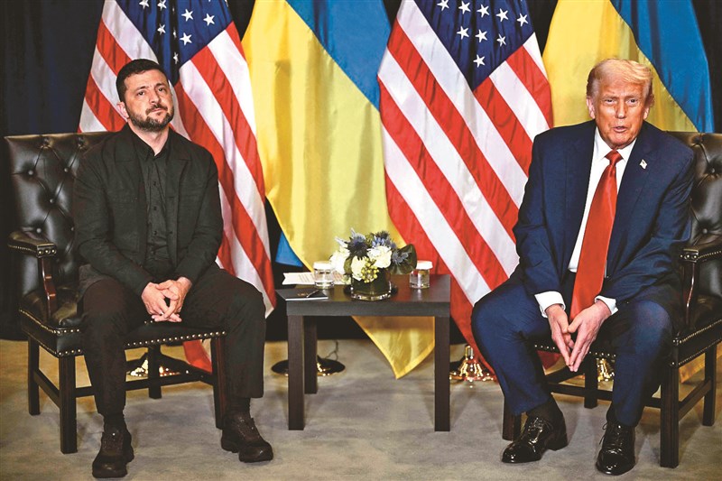 外傳由美俄祕密擬定俄烏終戰計畫,美國總統川普(右)21日表明,限烏克蘭總統澤倫斯基(左)在27日前接受。圖為川普與澤倫斯基9月在美國紐約市聯合國大會場邊會面。圖/法新社