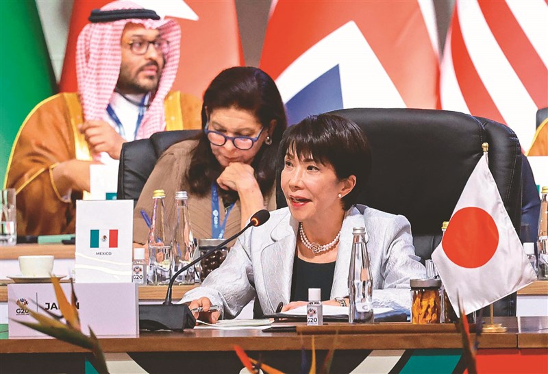 日本首相高市早苗(圖)22日出席在南非舉辦的G20峰會,中國大陸國務院總理李強也現身會議現場。由於中國對高市之前在日本國會發表的「台灣有事」言論不滿,兩人在G20峰會現場互動,成為各界關注焦點。圖/法新社