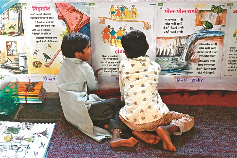 在印度北部拉賈斯坦邦的加利安普爾鎮(Kalyanpur),一群五、六歲孩子圍坐在教室地板上,跟著老師念出「papa」、「papaya」印地語單字。對這些原住民族孩子來說,用一種家裡沒人會說的語言上課,是艱難的挑戰。