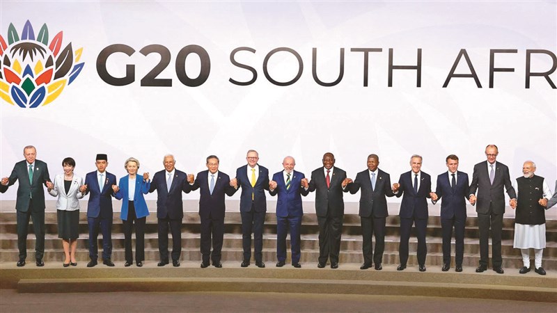 在南非舉行的G20峰會上,與會領袖22日大合照。圖/法新社