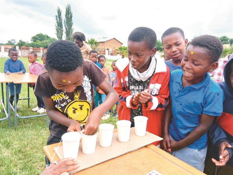 南非學童們專注玩環保闖關遊戲。圖/佛光山南華寺提供