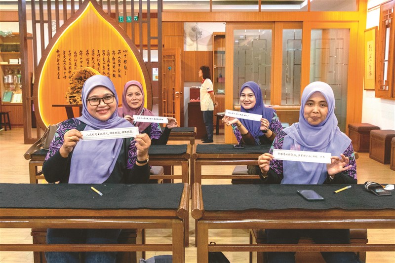 大馬瓜拉冷岳縣土地局4位工作人員歡喜展示完成的作品,並分享能在抄經堂抄經體驗中華傳統文化,是一段難忘而珍貴的經驗。