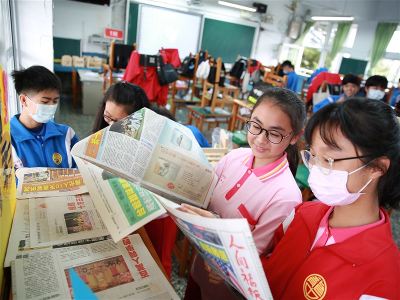 學生長期讀報,不僅可提升認知能力,還能增加對報紙新聞的信任度。圖為龍潭國中學生閱讀《人間福報》。圖/資料照片