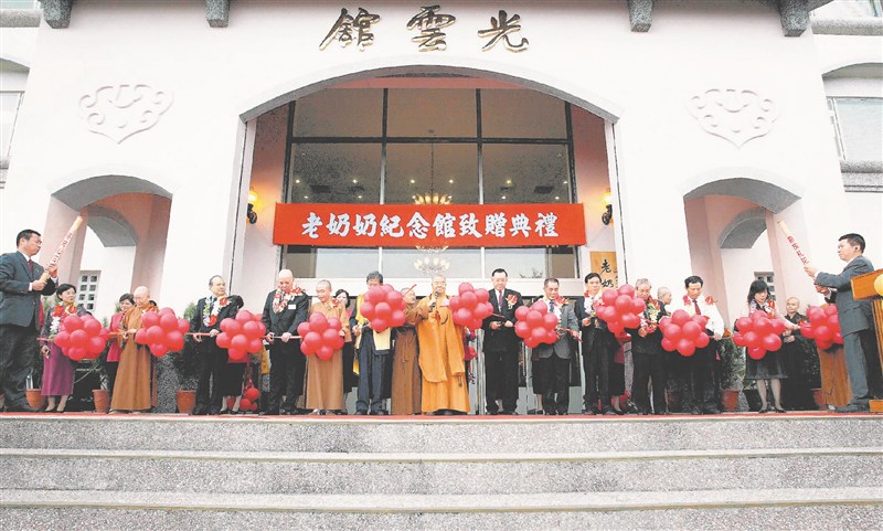感念星雲大師的母親德澤後人,佛光山僧眾捐資於佛光人文社會學院(後更名為佛光大學)興建「老奶奶紀念館」以表飲水思源。2004年12月19日,佛光人文社會學院將此館捐贈佛光山派下僧信二眾修道所用,將人間感恩、報恩的孝思,更擴大為教育事業。禮請創辦人星雲大師(中)主持致贈典禮。圖/資料照片