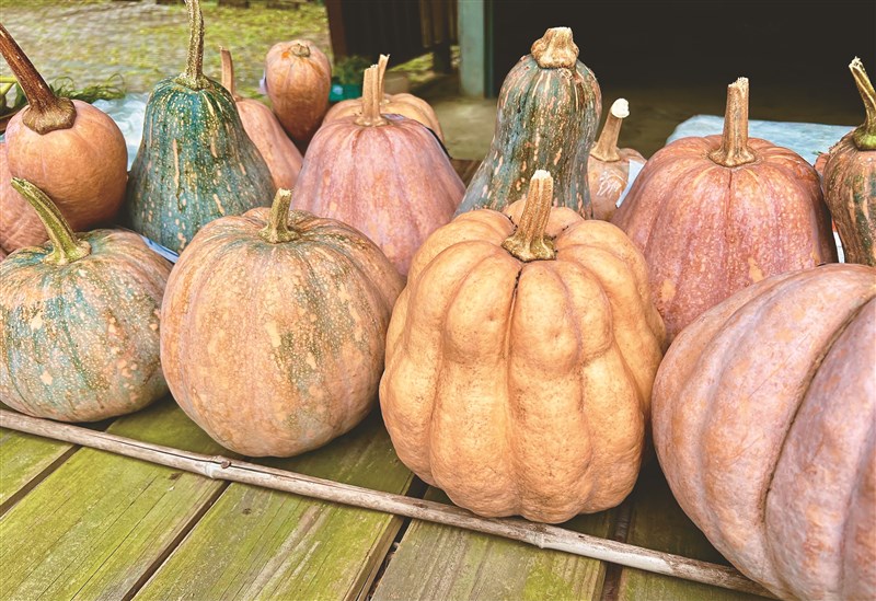 台灣南瓜幾乎四時都是產季,但是還是秋後的最好吃、最鬆甜。南瓜原產於北美洲,成熟的南瓜肉是金黃色,所以又稱金瓜,其種仁可炒或烤熟後為南瓜子,當堅果食用,嫩莖葉也是非常好吃的青蔬。
