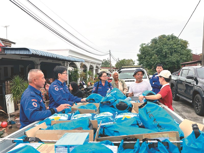 【人間社記者心崇綜合報導】馬來西亞有9州32縣傳來水災災情,逾8244戶、2萬6千多人受災。佛光山、國際佛光會與星洲日報基金會在企業與善心人士的支持下迅速啟動跨州救援,調動大量物資,送出2515份救援包至玻璃市州校園與受災家庭,並深入重災區,為民眾送上及時關懷。此外,佛光民防救護隊配合國家民防部(APM)指示,11月29日迅速前往Kampung Jaya Sepakat新村的PPS值勤,協助安頓受災居民,展現跨部門合作的人間關懷。