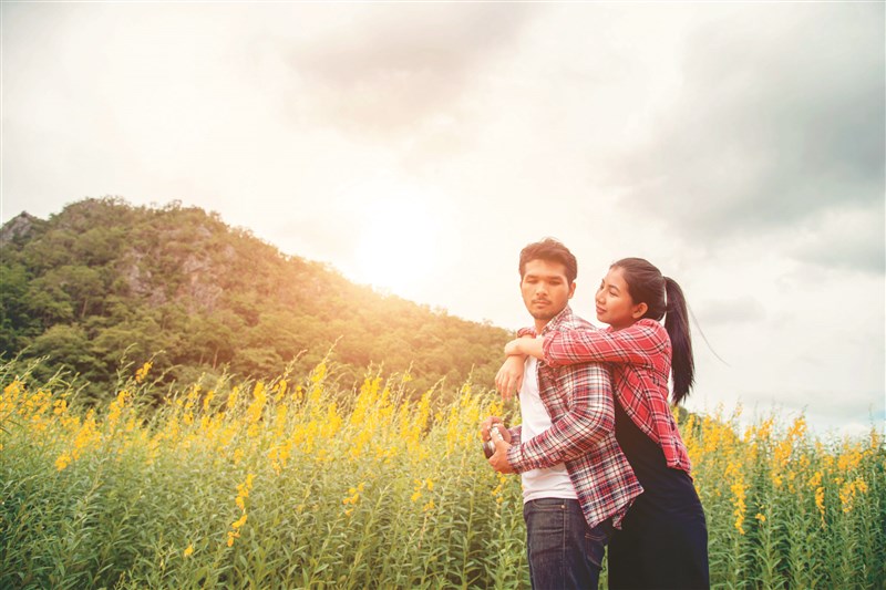 後背抱加上一致的呼吸,會使兩人置於相同的磁場,你們倆若能以此方式共享能量,就能產生安全感及如膠似漆的契合感覺。圖/123RF