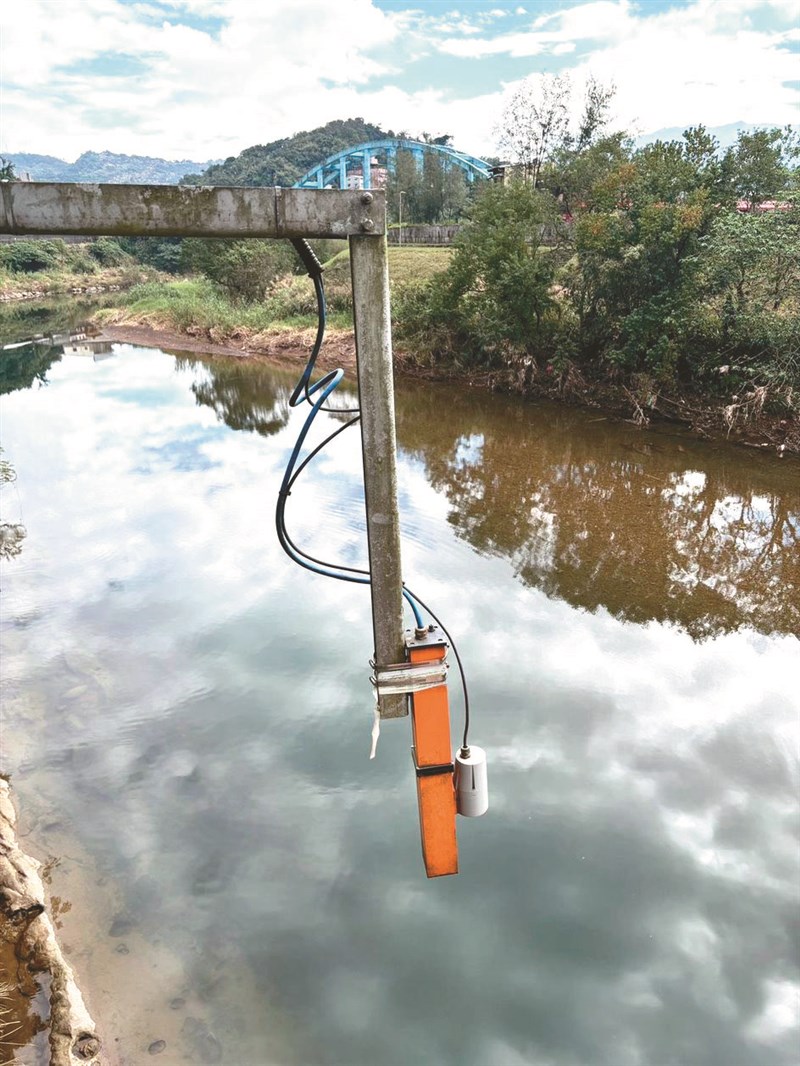 自來水公司八堵抽水站抽取有油汙的基隆河水,導致約15萬用戶受波及。圖為八堵抽水站的油膜偵測器。圖/水公司第1區管理處提供