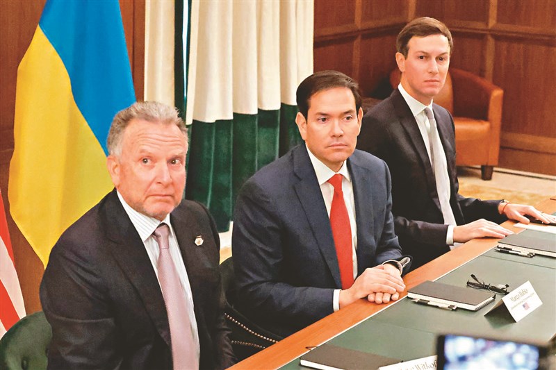 【本報綜合外電報導】美國國務卿魯比歐、白宮特使魏科夫、第一女婿庫希納,11月30日在魏科夫位於佛州貝殼灣的高爾夫俱樂部會晤烏克蘭官員,磋商和平計畫。魯比歐會後稱討論非常具建設性,強調任何計畫都應保證絕不再發生戰爭;魏科夫和庫希納則馬不停蹄,12月1日赴俄羅斯再談。