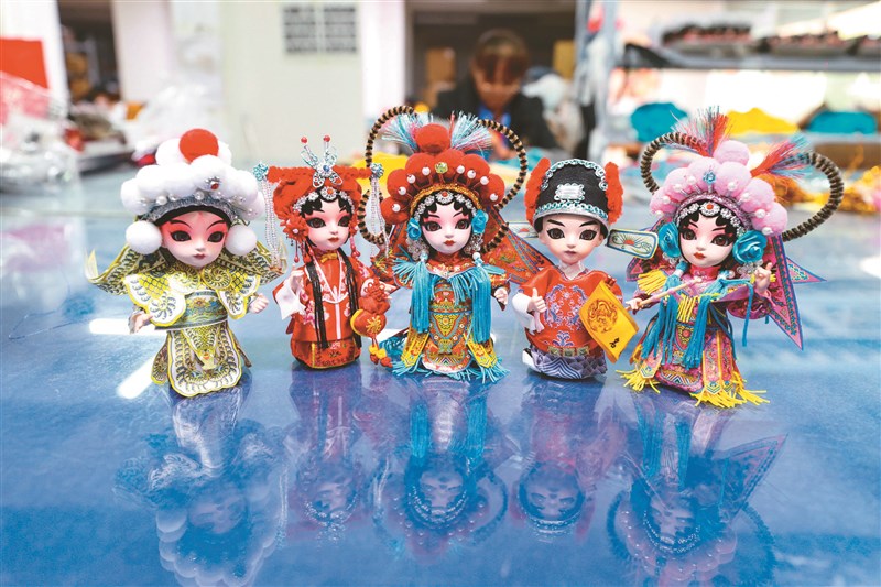 在中國大陸貴州省惠水縣幸福移民社區的「唐人坊產教融和基地」裡,工人們12月2日正在加緊趕製「中國芭比」唐娃娃訂單。此區不僅是省非物質文化遺產傳承人培訓基地,移民社區的民眾也會到此加工唐娃娃。唐娃娃形象取材於中國古典文學、戲曲和歷史人物等,加以專業化設計和多道工序製作而成。圖/中新社