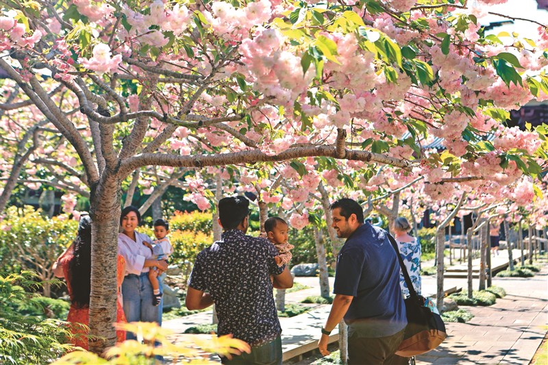 民眾稱北島佛光山的櫻花為「佛光櫻」。 圖/紐西蘭北島佛光山提供