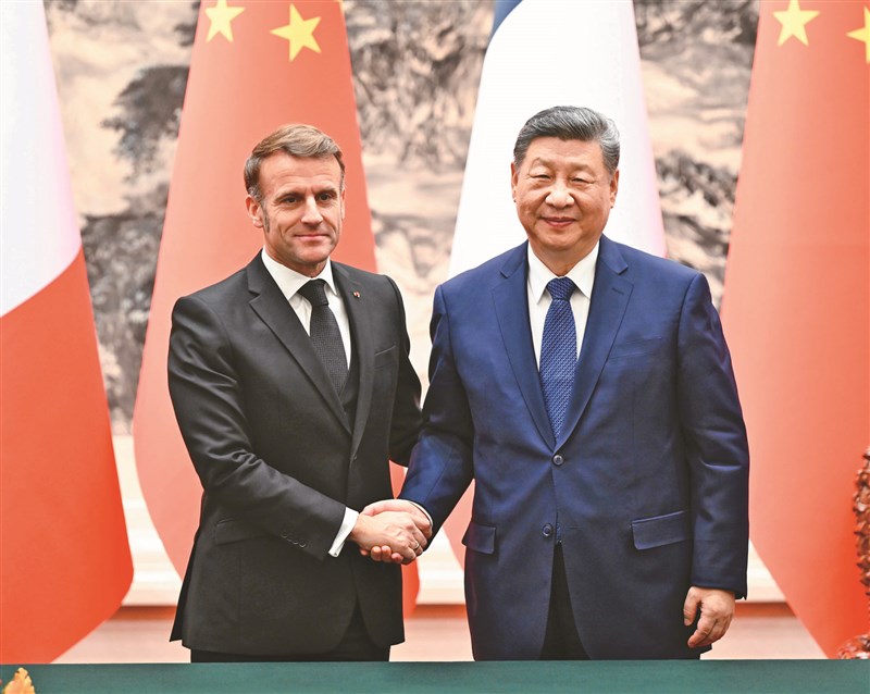 馬克宏3日抵北京,由大陸外長王毅接機後,昨日上午習近平和夫人彭麗媛,在北京人民大會堂為馬克宏夫婦舉行歡迎儀式。會談時,習近平說,中法兩國應高舉多邊主義旗幟,堅持平等對話、開放合作,讓中法全面戰略夥伴關係在「新甲子」走得更穩更好。