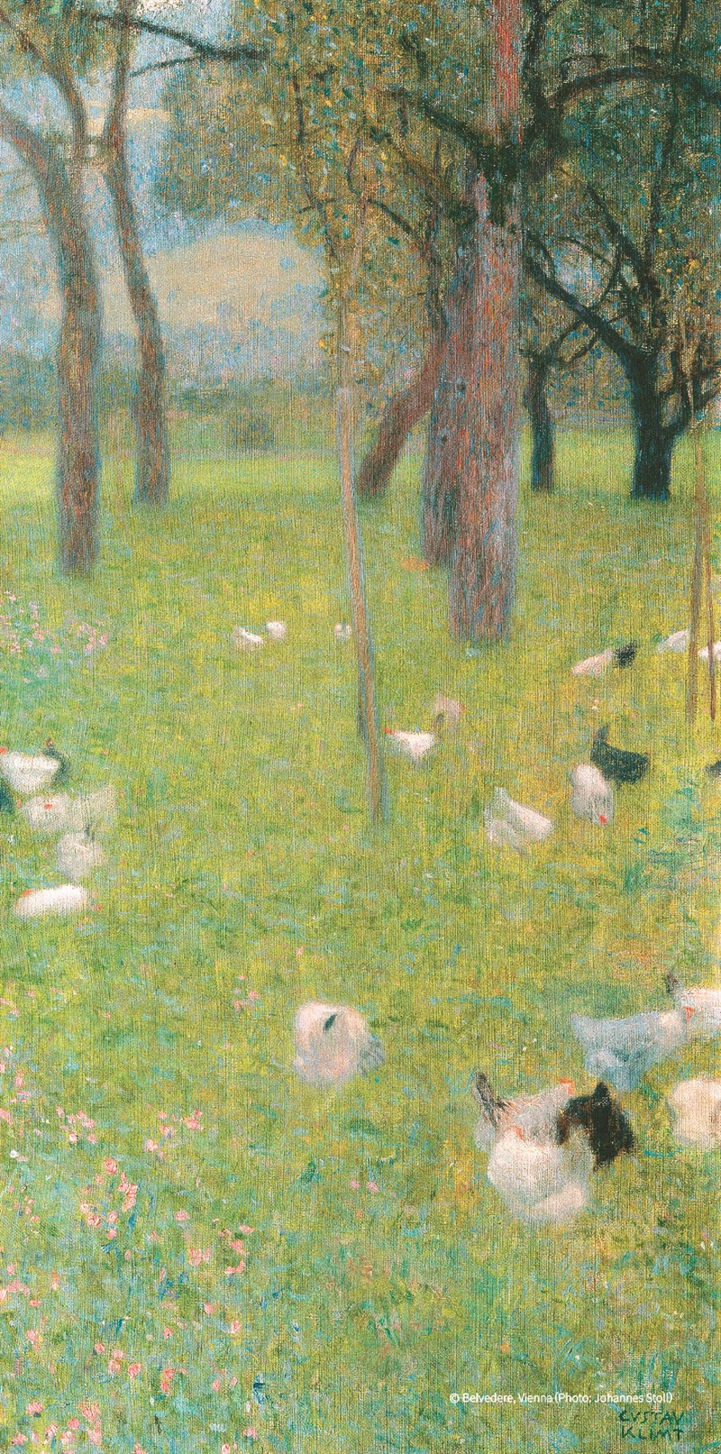 克林姆真跡〈雨後〉創作於1898年,描繪下雨過後草地的靜謐風景,以柔和色調與細膩筆觸呈現自然的生命力,展現藝術家晚期風景畫的成熟風格,與名作〈吻〉屬同期創作。