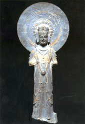 一九九九年十二月中國考古學家楊泓先生,接到一封信,信中附上日本MIHO博物館的藏品展覽圖錄中的蓮花背光石雕菩薩照片,之間還夾著三張文件:一張是中國大陸「文物月刊」一九八三年第七期的複印封面,一張是複印了這期刊登的考古簡報「山東省博興出土一批北朝造像」,內容是當地新出土的六張北朝晚期石雕佛、菩薩照片,最後一張則是白紙,上面只用中文繁體字由右至左書寫兩個大字:「國寶」。楊泓和友人追蹤山東博興文物單位,回覆這菩薩像一九七六年出土後,一直保存在縣文管所,一九九四年七月四日深夜被偷,從此下落不明。他們強調MIHO圖錄所刊的照片,正是失竊的文物。