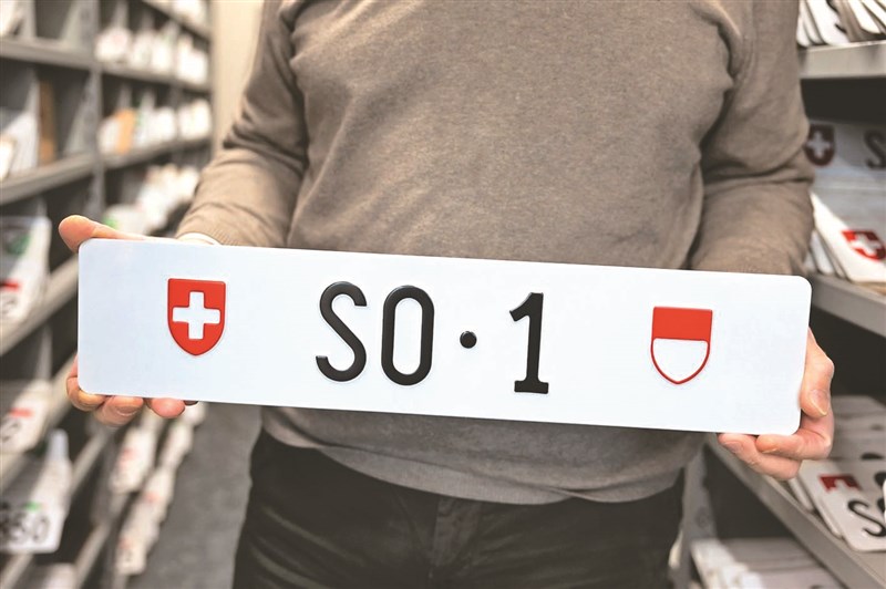 瑞士車牌屬人、不屬車,車主換車可繼續使用原車牌,特別車號是車主們追逐的標的,數字愈小愈受歡迎,「SO 1」車牌對某些車主而言,代表著「世間唯一」的價值。1994年,一名索洛圖恩居民以2萬瑞郎購入「SO 1」車牌,已是當時轟動新聞。2018年,這塊車牌被交回,並存放於機動車輛管理局。今年12月「SO 1」車牌再度釋出,以1萬瑞郎起標,線上拍賣會競爭激烈。