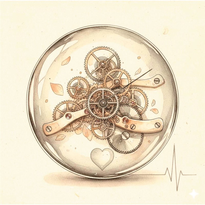 本詩前三分之二鋪陳水晶牢比喻,不但歌詠手錶機械的精巧,更意指在不停的滴答聲中,人生的時光流逝。後面三分之一發展賽跑的比喻,為手錶的滴答聲和人的脈搏聲二者之間的賽跑,指人生大部分時間熱血洋溢,這時脈搏聲勝出;但到臨終之際,心跳漸慢漸歇,滴答聲變成死亡的聲音,時間終勝出。