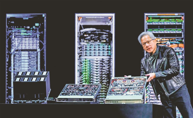 黃仁勳表態支持晶片出口管制。圖為黃仁勳3月在GTC大會介紹新品。 圖/法新社