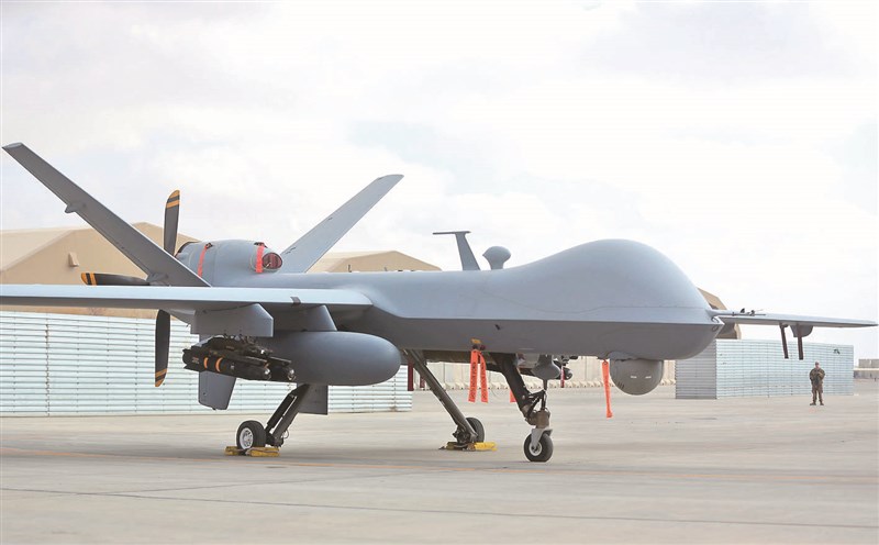 拜登政府承諾援助4架MQ-9無人機給台灣,但川普第2任上台後卻翻案「改送為賣」,我方因此作罷。圖為MQ-9無人機。圖/美聯社
