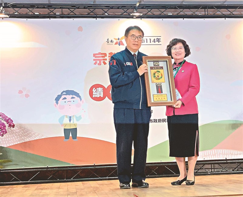 【人間社記者陳芷芸台南報導】台南市政府十一日在正統鹿耳門聖母廟舉行「台南市一一四年宗教團體興辦社會公益事務績優表揚大會」,佛光山福國寺致力推動社會教化、用心深耕在地,培養菩提幼苗,獲市府肯定,市長黃偉哲頒發牌匾,國際佛光會中華總會南區協會副協會長蔡泯惠代表接受。當天含蓋佛教、道教、一貫道、基督教、天主教,共計九十九個宗教團體榮獲表揚,深受市府肯定。