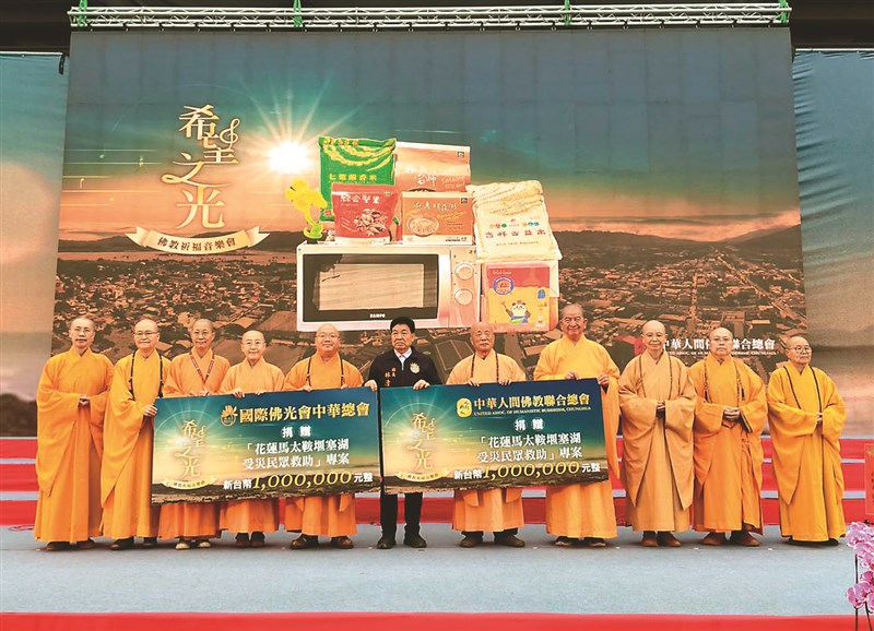 希望之光佛教祈福音樂會 撫慰花蓮洪災地震傷痛 人間社記者林汝鈺花蓮報導 |2025.12.16 語音朗讀 1993觀看次 字級 大 中 小 心保和尚(左5)、首愚和尚(右5)代表捐贈物資,由光復鄉長林清水(中)代表受贈。圖/林汝鈺提供中華人間佛教聯合總會14日在月光寺舉辦「希望之光」佛教祈福音樂會,現場1500人與會。圖/月光寺提供中華人間佛教聯合總會主席團主席與各單位代表一起合唱〈祈禱〉,祝願世界和平。圖/人間社記者李美蘭 【人間社記者林汝鈺花蓮報導】花蓮在歷經連續地震與洪災衝擊後,鄉親身心承受沉重壓力。中華人間佛教聯合總會於14日在佛光山月光寺菩提廣場舉辦「希望之光」佛教祈福音樂會,以音聲弘法、以關懷療癒人心,為災區及廣大社會民眾點亮安定與希望之光。佛光山住持心保和尚、中華人間佛教聯合總會輪值主席首愚和尚,分別代表國際佛光會與聯合總會共同捐贈200萬及300台微波爐,給現場的受災鄉民,由光復鄉長林清水代表受贈。心保和尚勉勵,天地無情、人間有愛,災難雖令人傷痛,卻也看見人性的光輝與慈悲智慧的成長,期盼慈悲與希望持續在人間流轉。首愚和尚表示,災難讓人承受難以言喻的痛苦,也讓人看見彼此扶持的溫暖。佛法教會我們在黑暗中更要點亮心燈,而花蓮鄉親展現的堅毅與互助,正是那盞不滅的光。未來佛教界將持續關懷花蓮,陪伴大家走過重建之路。林清水感謝佛教團體在物資與心靈上的實質幫助外,更感動於洪災雖重創地方,卻凝聚全台的愛與力量,讓光復得以逐步重建。他期盼鄉親不再停留於災難陰影,勇敢迎向未來。內政部宗教及禮制司副司長羅素娟指出,每當天災或疫情發生,佛光山總是第一時間動員資源投入救助,這次也看見佛光人深入災區慰問災民,展現宗教安定人心的力量。此次音樂會特別邀請在0403地震及洪災中受災嚴重的光復、鳳林等地鄉親參與,並有單國璽基金會、瑪爾大修會等天主教團體跨宗教出席,展現宗教攜手、關懷社會的力量。歌聲舞蹈祝禱 安定社會人心音樂會以「光啟大地願起眾心」、「眾光同聚願滿人間」為主軸,12個團體接力演出呈現佛教聖樂、原住民舞蹈、聲樂、創作民歌及敦煌舞蹈等22項節目。阿斯飛勒文化藝術團以原住民舞蹈〈與奇萊合唱〉揭開序幕,喚起對土地與文化根源的連結;夢蓮花讚頌合唱團演唱〈在這個時候〉唱出災後相互扶持的心境;佛光青年歌詠隊演唱〈點燈〉與〈請緊握我的手〉,傳達守望同行的力量。同為受災戶的酷麻.嗨樂團以〈你是我的超人〉、〈台灣的力量〉唱出重建過程的感動;李芸麒以富含穿透力女高音演唱〈攀越每座山嶺〉、〈與你同行〉表達不離不棄的陪伴;聲樂家呂麗莉演唱〈玉山之歌〉,象徵團結守護台灣土地的心願。佛光合唱團各分團、觀世音合唱團、花蓮佛光敦煌舞團,以歌聲與舞姿為花蓮祈願,壓軸的是佛光山僧眾合唱團,清唱人間音緣〈流轉〉、〈希望之光〉。活動尾聲,聯合總會主席團及佛光山法師領眾誦念祈願文,並與貴賓手持太陽花燈合唱〈祈禱〉,將象徵勇氣與希望的太陽花燈送給現場民眾。全場齊聲高喊「希望之光、花蓮有光」,在感動人心氛圍與祝福聲中圓滿落幕。中華人間佛教聯合總會祕書長覺培法師表示,「希望之光」象徵光復鄉的光,以及心中彼此光光相映的光明,共同帶給花蓮這塊土地重新燃起希望。透過音樂、信仰與實際行動,陪伴鄉親完成不只是家園的重建,更是心靈的重建,讓這盞光持續照亮花蓮的每個角落。跨宗教齊聚 災後最溫暖風景光復鄉災民林杏聰表示,很感謝教界舉辦祈福音樂會,心情獲得紓壓;也特別感謝佛光山與佛光會在第一時間走入災區,法師們親自指揮救難大隊機具進入災區協助清淤,並提供大量物資解決民生問題,全程陪伴與親力親為的慈悲讓人銘感五內。受災戶、也是國際佛光會光復分會長劉嘉麗表示,第一時間佛光會動員上千位「鏟子菩薩」投入清理,協助災民度過最艱困的時間,讓鄉親深刻感受到來自佛光會員的關懷。這場音樂會現場包括原住民、基督教與天主教朋友與花蓮民眾共1500人外,線上同步4000餘人共同參與,成為另一道最美的風景。 前一篇文章 房市低迷 建築貸款餘額9年首見負成長 下一篇文章 川普緊急關稅漏洞浮現 台灣僅23%商品被課稅 熱門新聞 01佛光山大雄寶殿 逾千僧信迎萬佛2026.02.0102【紀實攝影】花蓮月光寺 台灣後山的人間淨土2026.02.0103【人間行者心】一鏟一撬,心路通行2026.02.0104沙漠獅變海洋獅 為人類上了一課2026.02.0105【遨遊藝事】巴黎 黛瑪兄弟茶館(Dammann Frères)2026.02.0606【書頁微光】《把牠找回來》 流浪少年變身寵物偵探2026.02.0107土方之亂推高成本 房價漲壓浮現2026.02.0208【修行在人間】佛心的慈視92026.02.0109【心靈財富】慈悲包容是幸福安樂2026.02.0110星雲大師全集⑳【佛教管理學②】禪和子其人傳④2026.02.01 訂閱電子報 台北市 天氣預報 台灣一週天氣預報 相關報導 WBC中華隊 旅外戰力強悍 台積熊本二廠升級3奈米 魏哲家拜會高市習川通話 白宮:美對台政策未變手作布偶減塑 童玩邁向永續川普稱莫迪停買俄油 美降印度關稅至18%最清澈湖泊告急 外來藻入侵
