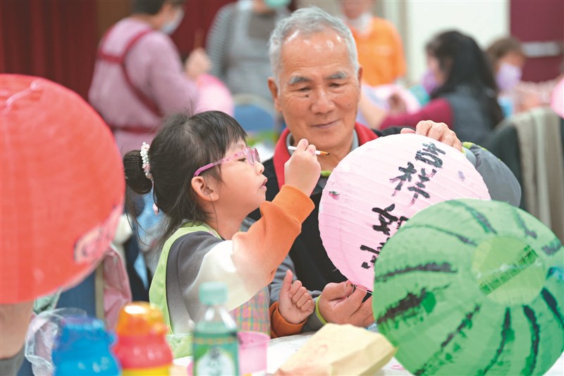 祖孫同樂彩繪燈籠,溫馨幸福。 圖/人間社記者王鴻翔