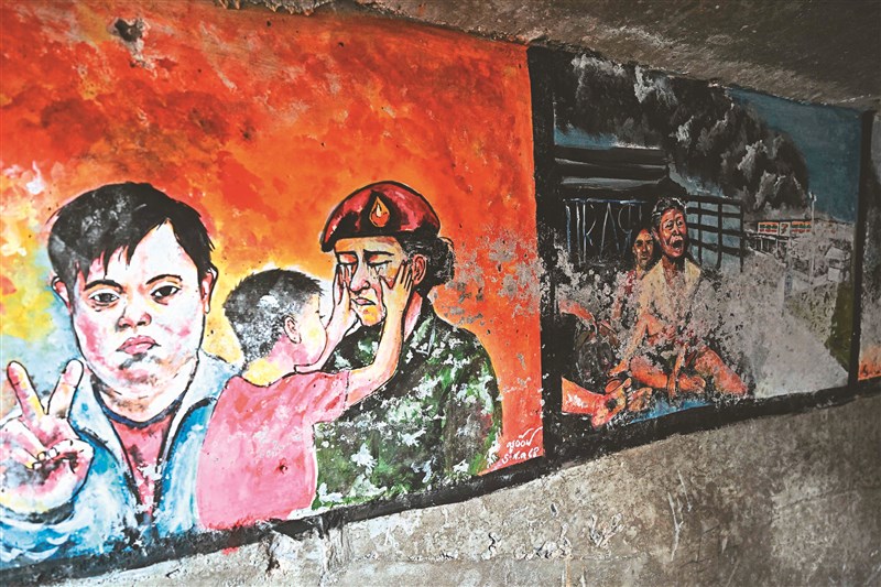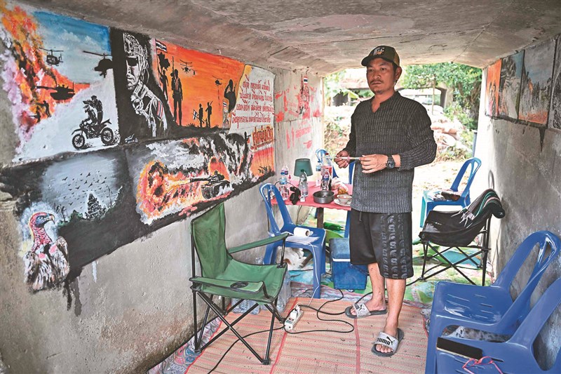 混亂中找回平靜 老師躲碉堡繪戰火 |2025.12.17 語音朗讀 61觀看次 字級 大 中 小 瓦塔納猜在碉堡內繪製壁畫,他形容是「混亂中的平靜」。圖/法新社影像充滿張力的壁畫,靈感源自於殘酷的激烈軍事衝突。圖/法新社影像充滿張力的壁畫,靈感源自於殘酷的激烈軍事衝突。圖/法新社 【本報綜合外電報導】泰國與柬埔寨邊境上周再爆嚴重軍事衝突,在泰國一所鄉村學校的水泥防空掩體灰白牆面上,38歲的音樂教師瓦塔納猜(Watthanachai Kamngam)神情專注,平靜地描繪著一幅幅色彩斑斕的景象:直升機、坦克、飄揚的國旗,以及士兵攙扶傷患的身影,他形容自己的創作是「混亂中的平靜」(peace amidst chaos),並坦言:「不是每個人都能有這種感受。」這些充滿張力的壁畫,靈感正源自於他身處的殘酷現實。槍砲聲中 用藝術克服恐懼這次戰火重燃造成雙方約50萬居民被迫流離失所,數百人被迫在水泥掩體中躲避連綿不絕的爆炸聲,瓦塔納猜任教的學校距離邊境僅約5公里,砲擊聲時常震動空蕩的教室窗戶,戰爭彷彿就在牆外發生,他說:「我只是想把正在發生的事情記錄下來告訴大家,這就是我們的現實。」他第一次拿起畫筆是在7月初,當時邊境也曾爆發為期5天的衝突,造成數十人死亡。確認學生全數安全撤離後,他選擇留下,在夜裡聽著數百發砲彈呼嘯而過,繼續作畫,「我當然會害怕」,他坦言:「但藝術能幫助我重新掌控情緒,找回內心的秩序,溫暖、安全且令人寬慰。」在邊境村落,新建防空碉堡成了居民心中難得的避風港,厚實的水泥結構外,覆蓋著一層藍白相間的沙包,隔絕外界的震動與恐懼。62歲的農民索麥(Sommai Sisuk)與鄰居圍坐在小火堆旁取暖,準備晚餐的糯米,「上次爆發衝突時,我們根本沒有任何掩體」,索麥表示,這些新避難所11月才完工,「當時每個人都驚恐焦慮,不知道該怎麼辦。但這次感覺安全多了,政府為我們建了這個看起來很堅固的掩體,大家都很滿意。」新避難所 讓居民相互取暖對於選擇留下來看守家園、農田和牲口的居民來說,這些避難所成了重要的聚會點,「這些掩體改變我們的生活」,索麥說:「當槍砲聲變大時,我們可以一起躲進去,那裡讓人感覺溫暖、安全,且令人寬慰。」然而,即便有了新防護,他對戰事短期內落幕並不樂觀,「衝突還會拖下去,泰國不會退讓,柬埔寨也不會。」索麥低聲說:「所以這些碉堡真的很重要。」當國界成為砲火交會之處,反映出地緣政治長期僵局對平民生活的深遠影響,新建的避難所成為邊境居民,在寒冬與戰火中唯一的依靠。瓦塔納猜選擇用畫筆為冰冷的水泥牆添上顏色,他的壁畫不只是個人療癒,更是一種人文回應,在戰爭的縫隙裡,仍有人試圖留下記憶、保存情感,即使身處衝突前線,人心仍渴望和平與尊嚴。 前一篇文章 感謝路人餵食 浪浪每天送禮回報 下一篇文章 88歲還在超市打工 網紅助募款5563萬 熱門新聞 01桌球年終賽激戰 林昀儒力爭晉4強2025.12.1202【研朱札記】 臺灣第一本訪碑專著 《北臺灣之古碑》與石坂文庫2025.12.1103泰國合艾水災 佛光山送暖助復原2025.12.1104岩層中 古代地震線索2025.12.1105多倫多佛光山 佛光人行佛精進獲獎2025.12.1106光明大學宿霧藝術學院 三好音樂劇放光采2025.12.1107【童詩.童思】 柳丁花2025.12.1108拉脫維亞女性 租老公做粗重家務2025.12.1109包錦蓉:我可以逆風高飛2025.12.1310孟加拉紗麗申遺 盼延續織機工藝2025.12.11 訂閱電子報 台北市 天氣預報 台灣一週天氣預報 相關報導 棄犬苦等主人2個月 獲救迎新生寵物專用氧氣罩 火場救2小貓命京都地鐵五條站 憑空出現7號出口88歲還在超市打工 網紅助募款5563萬感謝路人餵食 浪浪每天送禮回報日奇特車站 月台設在隧道洞口