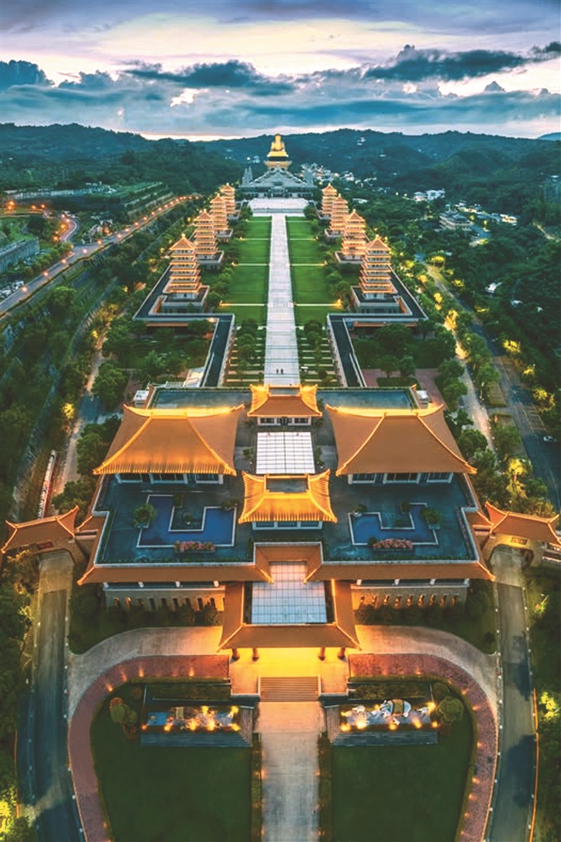 長兩百四十公尺的成佛大道,兩側矗立著八座寶塔,體現了對稱、和諧的東方建築哲學。佛光山每年推動的書蔬博覽會,是高雄市指標性的文化盛事,成功地傳遞永續蔬食與文化知識深度融和的理念。