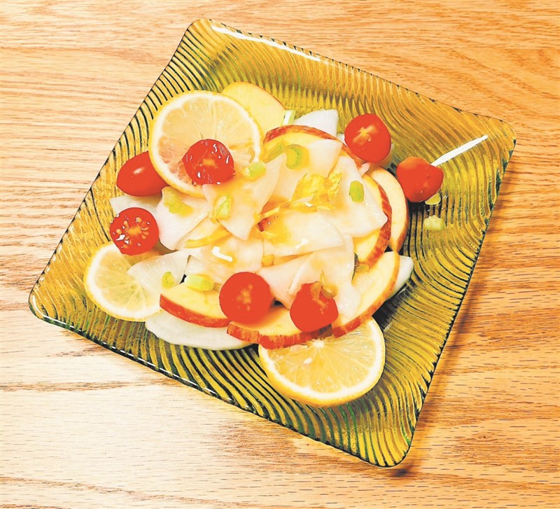 【節氣養生】 冬至 清補開胃 蜜蘋果蘿蔔沙拉 文/但漢蓉 |2025.12.20 語音朗讀 11觀看次 字級 大 中 小 圖/但漢蓉圖/但漢蓉圖/但漢蓉圖/123RF 文/但漢蓉《月令七十二候集解》云:「冬至,日南至,日短之至,陰極之至。」冬至,是24節氣中最具儀式感的節點——白日最短、黑夜最長,而陽氣自此一息回升,天地在極陰之中悄然萌動著新生。冬至三候:一候蚯蚓結;二候麋角解;三候水泉動。萬物的生命節奏由極陰轉向初陽,深寒裡孕育著最初的回暖。台灣的冬至,雖不若北方冰封雪沉,但冷風依舊帶著細微的刺感;冬陽清冷,空氣乾冽,此時腸胃與免疫最易受寒,此時節人們多以湯圓、溫補料理暖身;同時在此時節盛產的飽水白蘿蔔與梨山蜜蘋果,亦是大地的珍貴饋贈,搭配上幫助消化的梅醋,均勻翻拌成一碗清爽的醃漬沙拉,能在補冬之餘調和乾濁、潤澀開胃。冬季蘿蔔,素有「冬吃蘿蔔、夏吃薑」之說。此時白蘿蔔質地最為鮮甜細緻、水分充盈,具有清潤生津、順氣化痰、幫助消化的功效,更因富含維生素C與植化素,成為冬令防護力的天然助手。台灣風味獨特的蜜蘋果正值產季,與金棗、金桔等冬季柑橘相遇時,酸香交織,能將蜜蘋果的清脆甘甜喚醒得更為細膩,為深冬的餐桌添上一抹明亮與清新。冬至補冬之際,一道清爽的蘿蔔蜜蘋果沙拉,既能醒脾開胃、助消化、減緩補品的厚重,是冬季飲膳裡最令人驚喜的 「清補之味」。 食 材 A:醃蘿蔔:白蘿蔔 800g(一根大蘿蔔)、鹽 1.5大匙醃漬蘿蔔醬汁:熱開水100g、冰糖80g、梅子醋100gB:蜜蘋果:蜜蘋果1顆、水200g、鹽1茶匙、檸檬片數片C:任意添加的冬季水果與時蔬金棗、金桔檸檬、生菜、番茄等 作 法 將蘿蔔刷洗乾淨,熱水沖一下表皮,切成片狀加鹽巴抓拌,半醃約兩個小時後,抓洗掉鹽水與蘿蔔澀水,再泡入醬汁裡,放冰箱備用。蜜蘋果刷洗乾淨,連皮切片,泡入檸檬鹽水中可防止變色並增添酸香。將材料A白蘿蔔先醃起來,裝瓶放冰箱可保存3至5天,放得愈久愈入味。用餐時可搭配喜歡的水果B與時蔬C,做成一碗繽紛、清爽開胃的冬令沙拉。 前一篇文章 【植感滋味】鍋中綻放的驚喜 下一篇文章 【生活蔬食】 生煎香菜豆包 熱門新聞 01【閃文集】火星暗斑之謎2025.12.1602【詩】草螟公2025.12.1803【為人父母】 允許如其所是2025.12.1504【詩】 航夢2025.12.1505東方微笑跨越千年 麥積山石窟現佛館2025.12.1506寶塔寺 三代同堂搓湯圓、繪燈籠2025.12.1607佛光山福國寺 獲頒台南市宗教績優團體獎2025.12.1508高雄新航線明啟動 佛光山成亮點2025.12.1709如何優雅不濺水花?2025.12.1610人間佛教在菲律賓2025.12.14 訂閱電子報 台北市 天氣預報 台灣一週天氣預報 相關報導 【點心時間】 芋糬地瓜包【輕蔬日和】 芽菜的趣味【生活蔬食】 生煎香菜豆包【植感滋味】鍋中綻放的驚喜【淨蔬禪食】大自然的瑰寶:食用植物【逸饗蔬食】茴香 冬季限定 暖心又暖胃 作者其他文章【節氣養生】 清新暖胃 黃菊三鮮豆腐湯【節氣養生】養藏溫補 桂花蜜小米糯藕【節氣養生】霜降 甘醇溫潤 桂香龍眼小米露【節氣養生】清秋滋養 松子綠豆糕【節氣養生】 秋分 潤燥的甘露湯【節氣養生】 白露 掌心的甜糯 五穀黏豆包