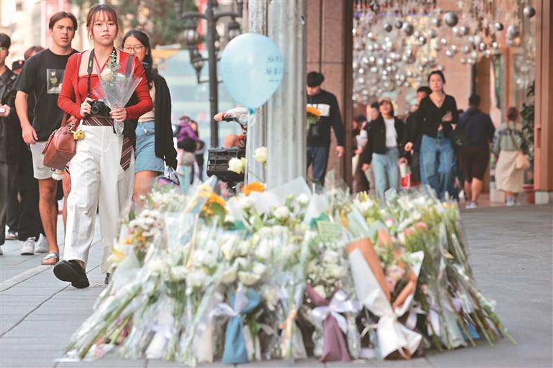台北車站周邊鬧區前晚發生這起宛如恐怖攻擊事件,昨上午陸續有民眾帶著百合、白玫瑰等花束到案發地獻花,有路人雙手合十祈禱,現場也有2組制服警察巡邏。