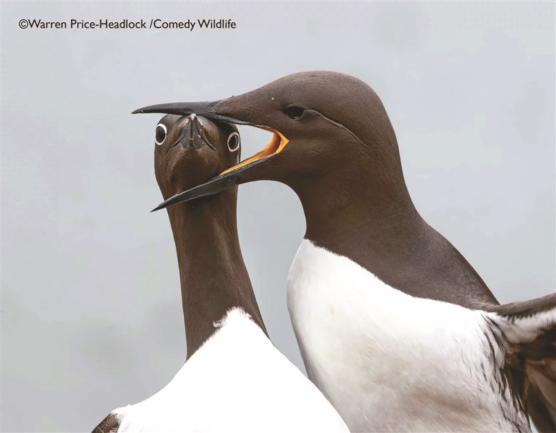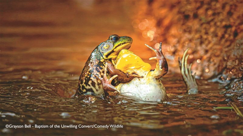 【動物奧斯卡獎】猜猜誰最會演(上) 文/彌生 |2025.12.21 語音朗讀 70觀看次 字級 大 中 小 鳥類組冠軍 看我施展鎖頭功! Headlock 有些海鳥喜歡在狹窄的岩壁邊緣築巢,活動空間十分有限,巢與巢之間緊緊相連、擠成一堆,這對海鳥而言可不是好事,因為尖嘴海鴉(又稱「崖海鴉」)的領域意識非常強烈,為了爭奪巢位,牠們之間經常爆發衝突或打鬥。 攝影師細心觀察了許久,抓住瞬間拍下這張照片。畫面中,尖嘴海鴉看起來一臉懵,而牠的頭正被隔壁鄰居的鳥喙牢牢夾住。攝影師表示,他最喜歡的部分是:直直望向鏡頭的那隻海鴉,那雙像是畫上白色眼線的雙眼,更加突顯牠進退兩難的處境,呆萌的樣子令人難忘。圖/Warren Price兩棲與昆蟲類大獎+青少年組冠軍 不情願的受洗者 Baptism of the Unwilling Convert 春天時,所有的公蛙都會出現在池塘裡,開始建立自己的地盤。青少年攝影師帶著相機,趴在地上觀察牠們、一邊拍照,直到回到家檢視影像時,才注意到這張令他驚喜的照片。「這張照片是至今我最愛的作品之一。我們全家都覺得:畫面就像一隻青蛙正在替另一隻做受洗儀式!」 得獎的攝影師年僅13歲。他是在3年前、10歲時開始對攝影產生興趣。他最喜歡的拍攝對象是花栗鼠,因為牠們既好奇又可愛。對於此次能贏得攝影大賽青少年組冠軍,和其他成人攝影師並列,Bell覺得備受鼓舞和肯定。圖/Grayson Bell總冠軍+哺乳類組冠軍 擊掌 High Five 攝影師花了4天的時間,在霧氣瀰漫的盧安達維龍加山脈徒步跋涉,尋找把這裡當作家園的大猩猩家族。這一天,攝影師遇到了一個的龐大的猩猩家族。牠們聚集在一處森林空地上,成年大猩猩悠閒地覓食,而年幼的大猩猩則興奮地四處玩耍。 其中一隻年幼的雄性猩猩格外耍寶,一直想向同伴炫耀牠的「雜技才能」,不斷旋轉、翻滾、踢腿……攝影師看著牠純真快樂的玩耍著,忍不住按下快門,撲捉到牠們調皮、活潑兼愛秀的靈魂。 圖/Mark Meth Cohn高度讚揚獎 (狐猴)洋芋片廣告 Fonzies advertising 一隻狐猴如優雅的舞台劇演員,忍不住舉起手舔了舔,然後表情停頓了一下,似乎在回味剛才吃下的東西。讓攝影師瞬間想起兒時的零食廣告,忍不住讚歎野生動物的幽默感比人類還精采。圖/Liliana Luca決賽入圍者 大象躲貓貓 Peekaboo 圖/Henry Szwinto魚類組冠軍 微笑 Smiley 攝影師在菲律賓進行水肺潛水時,這條小魚不斷從牠的家,一個鑲在珊瑚紋理中的小洞探出頭來,讓攝影師忍不住拍了幾張照片。 「我非常喜歡牠那張調皮、彷彿是在對我微笑的臉,牠的表情實在太豐富了。」 這種看起來總是笑咪咪的熱帶魚,體長大約只有8公分長,卻擁有罕見的防禦機制,當牠們受到威脅時,會不客氣的咬向掠食者,並在瞬間對掠食者注入毒液。這種毒素會讓掠食者頭暈、失去方向感,減弱牠們追捕的能力。圖/Jenny Stock決賽入圍者 犀鳥:媽呀,快逃~ Hornbill in a hurry 圖/Geoff Martin 文/彌生動物真的很會「演」,愛看熱鬧的人,往往欠牠們一座光芒萬丈的小金人,所以如果動物界也有年度「奧斯卡頒獎典禮」,想必一定競爭激烈,最後還會有評審受訪:「雖然得獎者實至名歸,但仍不免有遺珠之憾!」本版將用三周版面,分享野生動物搞笑又自然的「演技」……2025年壓軸上演的大戲「搞笑野生動物攝影獎」終於揭曉得主啦!今年的最大贏家,是一隻抬起左腳準備和同伴「Give Me Five」的黑猩猩照片,不論是活潑靈動的肢體,或是調皮逗趣的表情,皆讓評審一致決定把年度「總冠軍」頒給牠。這項在英國已舉辦第11年的「搞笑野生動物攝影獎」(Comedy Wildlife Photography Awards)活動,今年得到相機大廠Nicon掛名贊助,得獎者除了可以得到獎品,總冠軍作品的攝影者,將獲邀前往肯亞的國家公園,進行野生動物探訪之旅。這項最初只是兩位攝影獨立舉辦的社區活動,如今已成全球關注的焦點,以今年為例,一共收到來自全球108個國家、超過上萬件作品,無形中讓全世界的民眾,除了開心一笑之外,更帶動各國認同環境保護和自然保育的重要性。和往年相同,今年的照片依然引爆各界話題,動物們獨特的動作瞬間和搞笑表情,都在快門的捕捉下,有了最逗趣滑稽的「笑果」,令人不禁讚歎專業及素人攝影師的拍攝技巧,及為了抓住動物瞬間所下的功夫,甚至是充滿好運道的絕佳手氣。搞笑野生動物攝影獎當初會誕生,是因為野生動物攝影師Paul Joynson-Hicks,曾在東非拍攝野生動物多年,某天,他翻看自己拍攝過的照片時,意外被幾張作品逗得開懷大笑。他心想:野生動物可真是天生的喜劇演員呀,不只深具娛樂性和觀賞性,更能喚起大眾關心野生動物的生存環境,接納動物成為共享地球的生命體。2015年,搞笑野生動物攝影大賽從坦尚尼亞北部的小辦公室正式誕生。這項比賽如今已成為全球規模的國際競賽,並持續為野生動物保育貢獻力量。以下就來欣賞一部分今年令人驚豔又爆笑的得獎作品吧!本版圖片取自Nikon Comedy Wildlife Awards官網 前一篇文章 【特搜啟示】 下一篇文章 【特搜啟示】 熱門新聞 01【詩】草螟公2025.12.1802【閃文集】火星暗斑之謎2025.12.1603【為人父母】 允許如其所是2025.12.1504【詩】 航夢2025.12.1505東方微笑跨越千年 麥積山石窟現佛館2025.12.1506福建艦航經台海 空拍照首曝光2025.12.1807高雄新航線明啟動 佛光山成亮點2025.12.1708如何優雅不濺水花?2025.12.1609佛光山福國寺 獲頒台南市宗教績優團體獎2025.12.1510寶塔寺 三代
