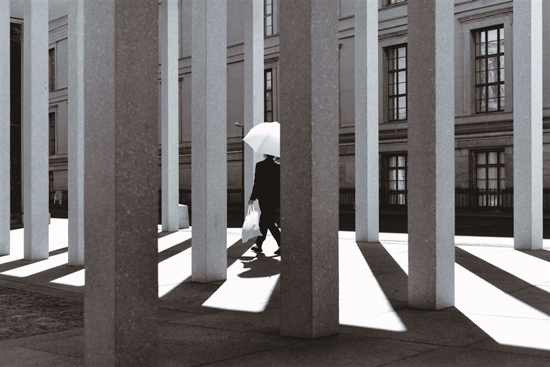 我喜歡看自己的影子,穿梭廊柱之間的空隙;留下,與時間交織的細影。