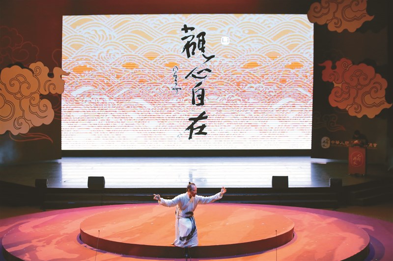 【記者曹麗蕙台北報導】舞台大螢幕流洩著〈道無古今,悟在當下〉、〈觀心自在〉等磅礴墨寶,那是佛光山開山祖師星雲大師的「一筆字」。舞蹈藝術家李偉淳身著素白衣裳,身形如蘸墨毛筆,隨歌手李玉剛〈菩提〉的旋律,以禪意肢體,在虛實間起承轉合,舞出大師的「筆墨舍利」。