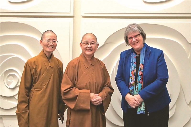 多倫多佛光山住持覺凡法師(中)、監院知觀法師(左)與皮爾區多元宗教委員會成員交流,邀約農曆新年期間造訪多倫多佛光山道場,體驗華人傳統年節。圖/人間社記者闕曉菁