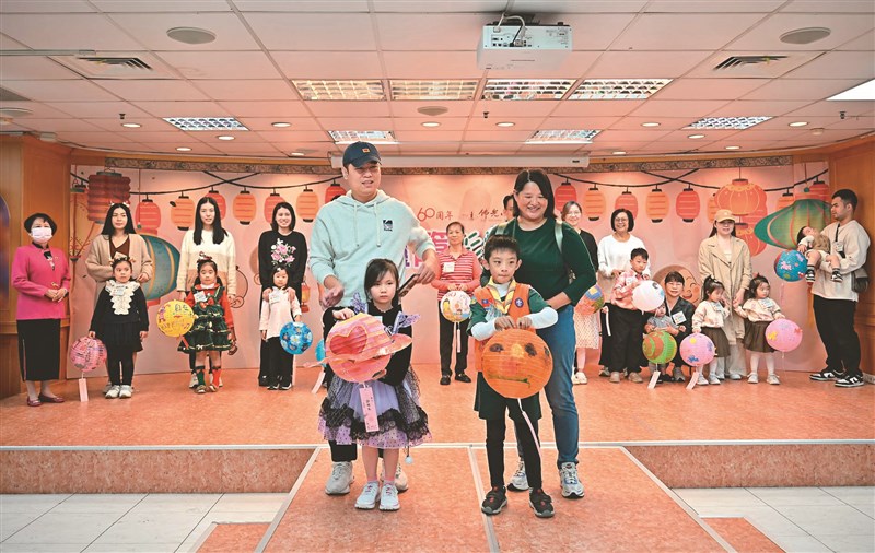 佛光山台北道場舉辦「彩繪燈籠比賽」,親子帶著作品走秀。
