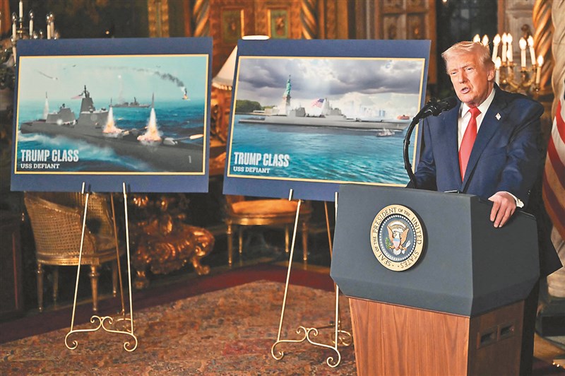 【本報綜合外電報導】美國總統川普22日宣布,計畫建造2艘全新「川普級」戰艦,最終打造25艘,配備極音速飛彈、雷射、電磁砲等最先進武器以及AI技術,威力比任何戰艦強大100倍。