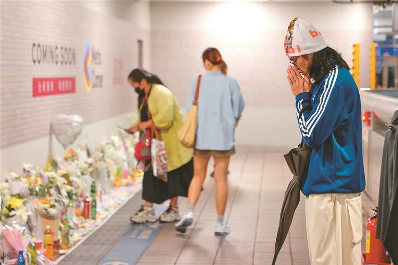 台北捷運19日發生通緝犯張文持刀連續攻擊事件,造成4死11傷悲劇,民眾昨前往台北車站M7出口哀悼無辜死者。圖/季相儒