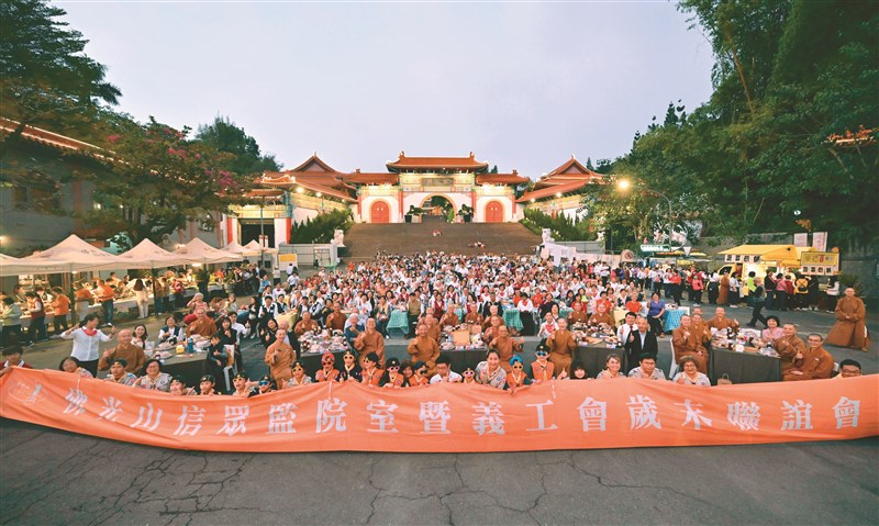 【人間社記者李生鳳大樹報導】「佛光山二○二五年信眾監院室暨義工會歲末聯誼會」二十一日傍晚,於佛光山不二門廣場舉行,廣場上搭建起舞台,旁有蔬食餐車、Buffet。大家一邊享用蔬食,一邊欣賞表演,還有頒發感謝狀表揚員義工,以及眾所期待的摸彩。約六百五十名法師、義工、佛光人齊聚,度過開心又溫馨的夜晚。