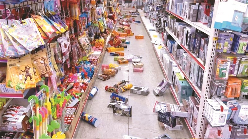 台東卑南鄉昨日下午5時47分發生規模6.1地震,花蓮縣富里、屏東縣三地門等地最大震度達4級以上,台東當地不少超商內物品掉落。圖/民眾提供
