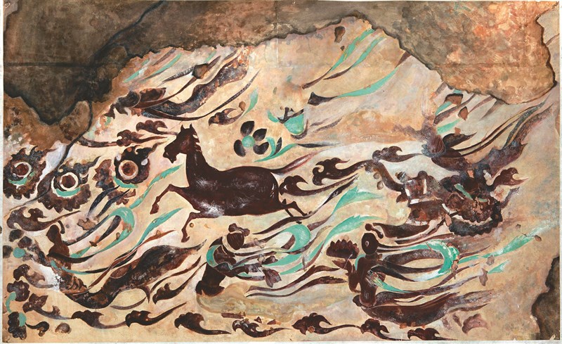 〈天馬圖〉:田致鴻臨摹,唐代,畫芯129.5×79.1cm,第5窟