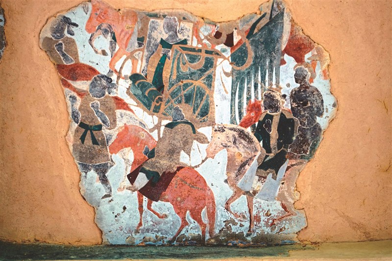 二○二六年為馬年,在麥積山石窟藝術特展中,我們難得可以欣賞到兩幅「馬」的壁畫——〈車馬出行圖〉、〈天馬圖〉。