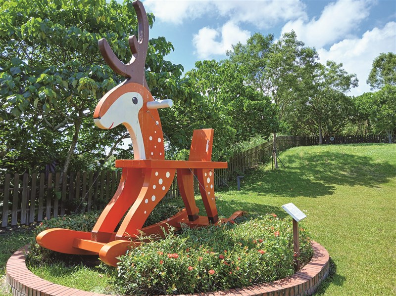 注:「公園有鹿」造形童趣、線條簡潔,能帶來正面能量。創作者何文彬以台灣原生種梅花鹿做為設計,用現代抽象的搖搖鹿,創造作品與民眾情感連結,鹿得草而鳴其群,代表心胸寬大;梅花鹿象徵吉祥、美麗且具領導性格;「有鹿」與俸祿的祿是諧音,寓意有健康的身體才能享受俸祿。
