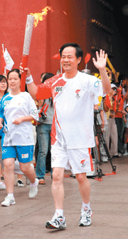 【本報綜合報導】奧運聖火昨天進入北京傳遞,北京台商會長林清發(右上圖/謝佳璋攝)擔任傳遞者。事實上,台灣人參與聖火傳遞的不只林清發一人,家住台北的汪迎仙(左上圖/本報重慶傳真),也在六月十五日參加地震災區重慶萬州的聖火傳遞,跑過了讓她一生難忘的四十公尺。
