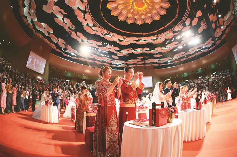 佛陀見證婚姻 締結良緣成菩提眷屬 王淑芬、人間社記者陳秀卿 |2026.01.02 語音朗讀 84觀看次 字級 大 中 小 心保和尚(中)、慧傳法師(右)、慧倫法師主法,見證喜結良緣。圖/人間社記者莊美昭「2026百年好合佛化婚禮暨菩提眷屬祝福禮」元旦在佛光山佛陀紀念館大覺堂舉行,為新的一年揭開充滿祝福與希望的序幕。37對新人攜手步入婚姻殿堂,並有344對菩提眷屬在佛陀座下重溫誓願、相互祝福。圖/人間社記者王詩景吳伯雄(中)伉儷偕兒媳及孫子獻唱〈小詩〉。圖/人間社記者王詩景 【記者王淑芬、人間社記者陳秀卿大樹報導】「二○二六百年好合佛化婚禮暨菩提眷屬祝福禮」昨日在佛光山佛陀紀念館大覺堂舉行,為新的一年揭開充滿祝福與希望的序幕。會場共有三十七對新人攜手步入婚姻殿堂,並有三百四十四對菩提眷屬在佛陀座下重溫誓願、相互祝福。包含國際佛光會世界總會榮譽總會長吳伯雄伉儷、世界總會副總會長劉招明伉儷等,現場與會家屬及親友以及線上近萬人與會。場面莊嚴溫馨,幸福洋溢、法喜充滿。昨日大覺堂內布置得喜氣洋洋,紅燈高掛、花藝典雅,百年好合佛化婚禮由吳伯雄伉儷擔任主婚人、劉招明伉儷擔任介紹人,佛光山住持心保和尚為證婚人。浪漫甜蜜氛圍 祈願百年好合三十七對新人在親友的祝福聲中攜手步入禮堂,多數新人為台灣籍,另有來自法國、美國、馬來西亞、柬埔寨、菲律賓及中國大陸等異國婚姻,現場充滿浪漫甜蜜的氛圍。會場播放佛光山開山祖師星雲大師的祝福開示,大師祝福新人婚姻永浴愛河,並以有趣的例子教導夫妻要懂得「讚美」,彼此用笑容、言語、表情維繫婚姻,包容、和諧就能營造婚姻的美好。心保和尚於福證祝福時開示,「同船渡、共枕眠」是要有一段殊勝的因緣,勉勵共組家庭的新人要學習很多事;當兩人意見不合時就要「包容」;家即是道場,過程中是一種學習、修持,這就是佛教中所謂的「共修」,讓慈悲、智慧化解障礙。夫妻相處不要計較、不要比較,勉大眾用「信仰佛法」傳家,婚姻可以百年好合、家庭充滿幸福。吳伯雄、戴美玉伉儷攜手走過六十年的鑽石婚姻,他分享夫妻相處之道,勉勵新人力行佛光山的「三好:做好事、說好話、存好心」及「四給:給人信心、給人歡喜、給人希望、給人方便」是最好的婚姻修持,鼓勵新人要在生活中實踐,就能體現「五和:自心和悅、家庭和順、人我和敬、社會和諧、世界和平」的境界。吳伯雄伉儷更偕兒媳獻唱〈小詩〉,展現婚姻美滿、幸福和樂的喜悅。劉招明、陳秋琴伉儷說,牢記星雲大師的開示,鼓勵新人要多讚美少挑剔,用「三好」經營婚姻及家庭,就能面對人生的甘苦,如有不如意的事要「轉念」,就能處事圓滿有能量。夫妻攜手獻唱〈牽阮ㄟ手〉,盡顯婚姻的濃情蜜意、幸福美滿。三十七對新人在大眾的見證下,交換信物,宣讀誓願文,也在心保和尚的見證下祈願祝禱婚姻幸福美滿、百年好合。佛光山大慈育幼院及佛光歌詠隊也為元旦的佛化婚禮帶來表演,菲律賓悉達多家族的成員並獻唱動人的歌曲,為佛化婚禮增添幸福感。不忘守護初心 共結此生善緣「二○二六百年好合佛化婚禮暨菩提眷屬祝福禮」,不僅見證新人在人生重要時刻立下承諾,也恰逢佛光山開山六十周年。國際佛光會祕書長覺培法師表示,會場明亮的金色設計,呼應佛光山六十周年的輝煌意象;並於會場一樓精心設置「傳燈六十.百年仰望」主題打卡區,邀請賓客親友在大喜之日,共同感受祝福、傳承與感念的深遠意義,展現人間佛教貼近人生的重要實踐。主辦單位送給新人和菩提眷屬的念珠極具巧思,別有深意,表示「初心如硃.守護一生」;菩提眷屬「紫願同行.菩提相伴」。此外,現場也準備寓意吉祥的「鏟子喜糖」,象徵新人願將此生的甜美與善緣分享給親友,祝福賓客「鏟起吉祥、鏟出如意」,讓今日所結的每一分因緣,都成為彼此生命中的美好祝福。 前一篇文章 致護法朋友們的一封信 下一篇文章 林孝雄、陳桂珠 牽手一甲子慶鑽石婚 熱門新聞 01【遨遊藝事】 威尼斯沉船書店2025.12.2902【中醫專欄】 中醫防失智之道2025.12.2703台北道場歲末聯誼 感謝義工同行菩薩道2025.12.2704看人間 厭童、厭老,然後呢?2025.12.3005新馬寺率大馬校長團 訪佛光大學2025.12.2706【閃文集】泰勒絲與狄金遜2025.12.3007宜蘭7.0地震 921後第3強震2025.12.2908當食物銀行義工 佛光人送暖2025.12.2709最好的辦法,就是繼續正常生活2025.12.2710【收穫滿滿】 快樂練氣功2025.12.30 訂閱電子報 台北市 天氣預報 台灣一週天氣預報 相關報導 Ramiru Mataro、Joanna Jane Ang 唱響悉達多開啟新人生黃建銘、莊佳燕 茹素者佛前攜手一生徐雍承、王欣屏 鄭力邦、洪孜樺 普中校友喜結連理郭仰倫、趙熠襄 以佛法經營和諧家庭邱泓憲、李妙諭 傳承信仰步上婚姻林孝雄、陳桂珠 牽手一甲子慶鑽石婚