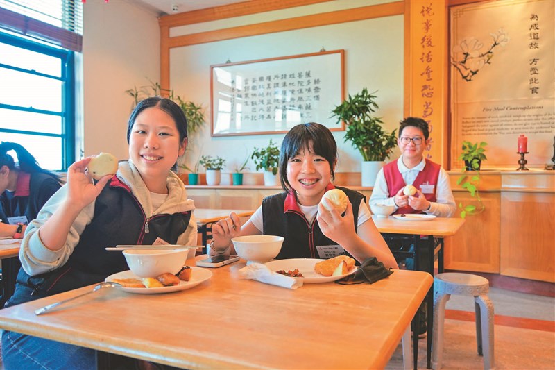 義工們歡喜享用美味溫暖的包子,從中體會大師的慈悲心。圖/人間社記者趙聞暄