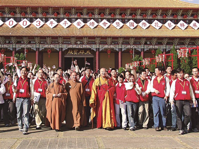 出家以後無家了,因為無家才能處處是家;不愛一個人,才更能愛大眾。他是超越兒女私情之上,能對一切的眾生興起無限慈悲。圖為2003年2月,星雲大師(中)於佛光山大雄寶殿前與馬來西亞佛光青年合影,勉勵青年們發揮「青年的力,菩薩的心」。圖/佛光山提供
