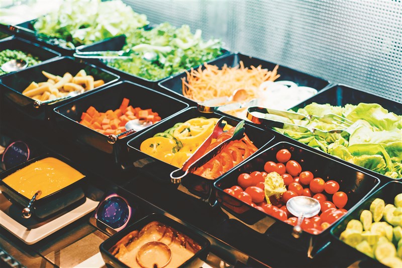 Buffet是許多民眾的聚餐選擇,不過中老年人腸胃消化功能減弱,應採「質精量少、細嚼慢嚥、菜色挑選」原則,避開過油、過鹹、油炸及加工品。圖/123RF