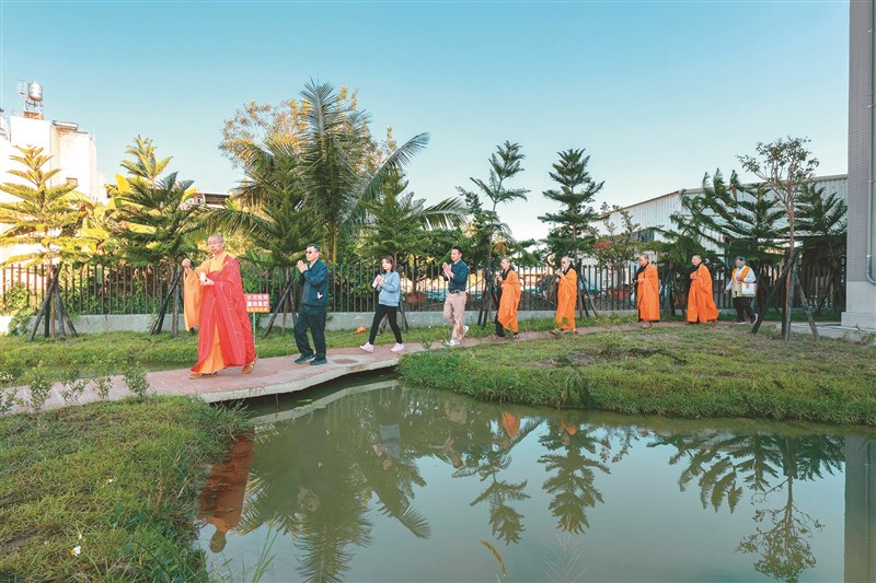 慧思法師(左1)5日帶領佛光人,前往台灣自來水公司屏東區管理處潮州新營運所灑淨。圖/人間社記者周敬哲