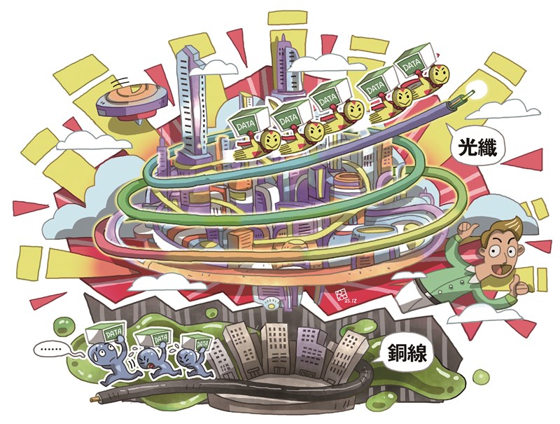 銅線的問題其實很多,用電多、線又粗又重、能傳的資料量有限,速度愈快愈容易出錯,還可能發生資料遺失。更麻煩的是,銅線對距離非常敏感,當傳輸距離超過10公尺時,訊號就開始變得不穩定,甚至在只有3公尺的距離下,要傳送每秒100或200億位元的資料,都可能出現問題。這些限制,讓資料中心的設計變得綁手綁腳,就像城市裡只能蓋小路,不能蓋高速公路。